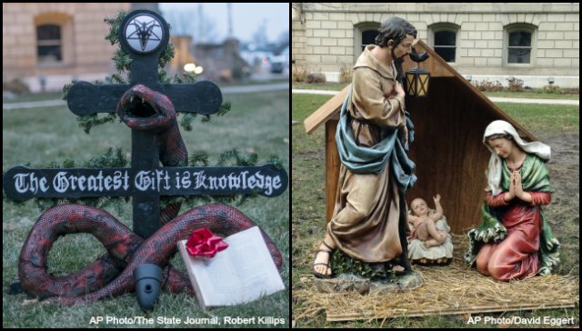 No entanto, a organização Templo Satânico terminou por conseguir que seu presépio comemorativo ao “aniversário de satanás” fosse instalado no local.