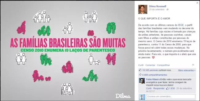 Em meio aos debates no Congresso sobre o chamado “Estatuto da Família”, uma postagem na página oficial da presidente Dilma Rousseff chamou atenção pelo inusitado.